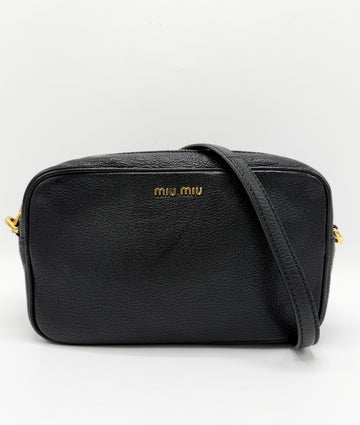 100% Authentic Miu Miu Black Pebbled Leather Camera Bag Condition: 8.5/10 Dimensions: 9"W 5"H 3"D...