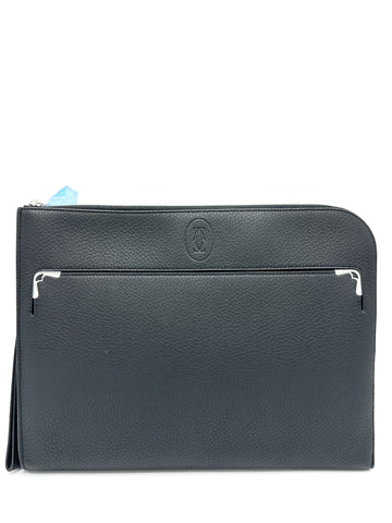 100% Authentic Cartier Black Pebbled Leather Front Pocket Clutch Condition: 9.5/10 Dimensions: 13"W 10"H 2"D...