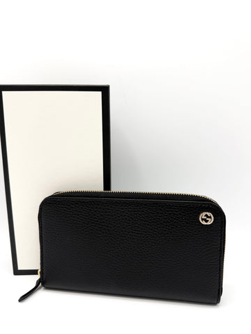 100% Authentic Gucci Black Pebbled Leather Interlocking GG SHW Zippy Wallet Condition: 9.5/10 Dimensions: 7.5"W...