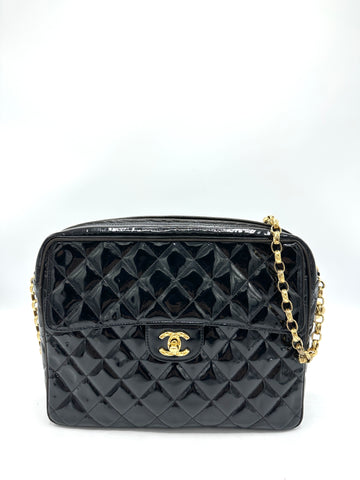 100% Authentic Chanel Black Patent 24k CC Turnlock Front Pocket Bijoux Chain Crossbody Condition: 8.5/10...