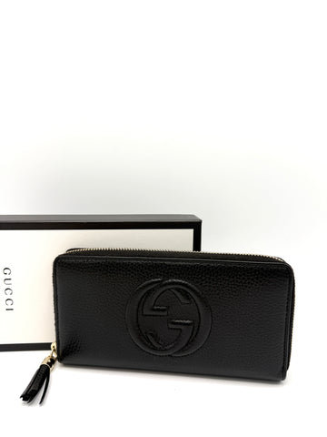 100% Authentic Gucci Black Pebbled Soho Zippy Long Wallet Condition: 9.5/10 Dimensions: 7.5"W 4"H 1"D...