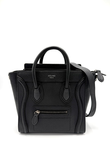 100% Authentic Celine Black Pebbled Leather SHW Nano Luggage Tote Condition: 9/10 Dimensions: 7.75"W 8"H...