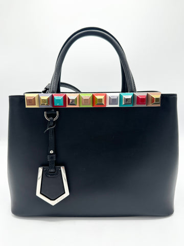 100% Authentic Fendi Black Multicolor Studded Petit 2 Jours Tote Condition: 9/10 Dimensions: 10.5"W 8"H...