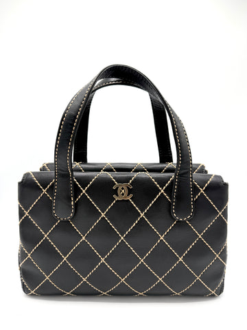 100% Authentic Chanel Black Quilted Wild Stitch Double Magnetic Snap Tote Condition: 9/10 Dimensions: 11.5"W...