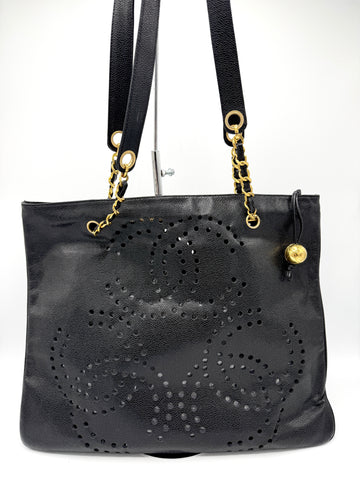 100% Authentic Chanel Black Triple CC Caviar Perforated Tote w/Pouch Condition: 9/10 Dimensions: 17"W 14"H...