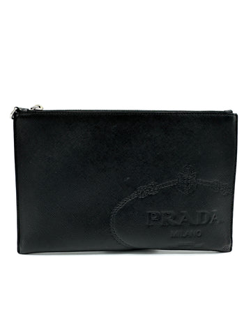 100% Authentic Prada Black Saffiano Logo Zippy Pouch Condition: 9/10 Dimensions: 11"W 7"H 1"D Details:...