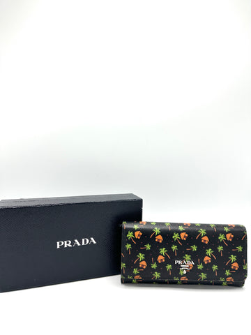 100% Authentic Prada Black Saffiano Tropical Hut Flap Wallet Condition: 9.5/10 Dimensions: 7.5"W 3.75"H 1"D...