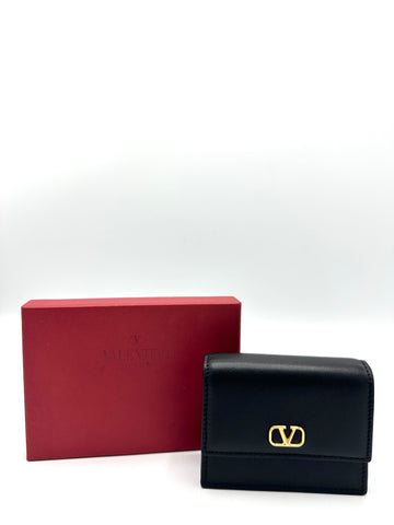 100% Authentic Valentino Black V GHW Compact Wallet Condition: 9.5/10 Dimensions: 4"W 3"H 1.25"D Details:...