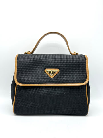 100% Authentic Saint Laurent Black Woven Brown Leather Trim Flap Top Handle Condition: 9/10 Dimensions:...