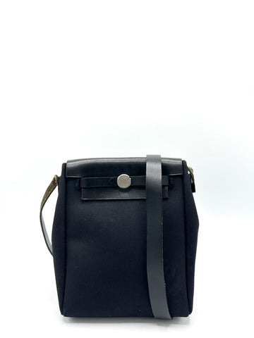 100% Authentic Hermes Black/Beige Canvas Herbag TPM Condition: 8.5/10 Dimensions: 6.25"W 8"H 2.5"D Inclusions: Beige...