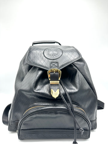 100% Authentic Versace Black Sun Backpack Condition: 9/10 Dimensions: 12.75"W 14.5"H 7"D Details: Minimal scratching...