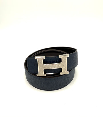 100% Authentic Hermes Blue Togo/Black Box Guilloche H Reversible Belt Size 100 Condition: 9/10 Dimension:...