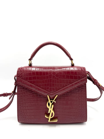 100% Authentic Saint Laurent Bordeaux Red Croc Embossed Cassandra Condition: 9/10 Dimensions: 7.75"W 6.5"H 3"D...
