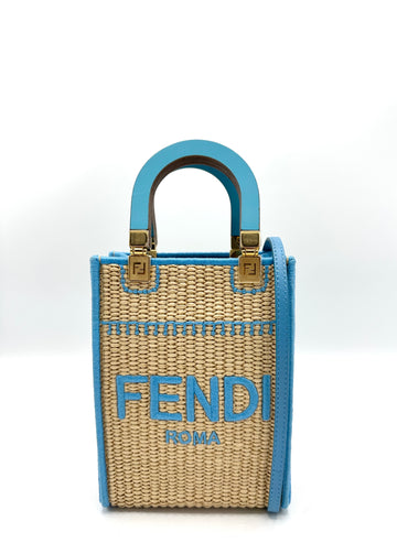 100% Authentic Fendi Blue Raffia Sunshine Mini Tote Condition: 9.5/10 Dimensions: 5"W 7"H 2.5"D Inclusions:...