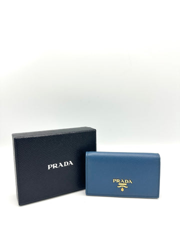 100% Authentic Prada Blue Saffiano Compact Flap Wallet Condition: 9.5/10 Dimensions: 4.5"W 2.5"H 1"D Inclusions:...