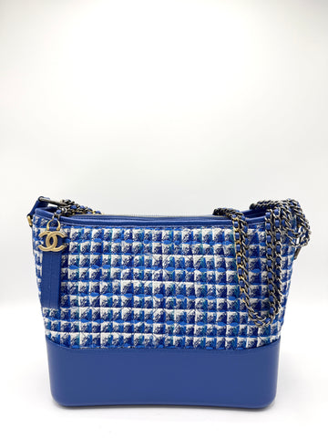 100% Authentic Chanel Blue/White Tweed GHW Gabrielle Condition: 9.5/10 Dimensions: 10"W 8.5"H 3.5"D Inclusions: Sticker...