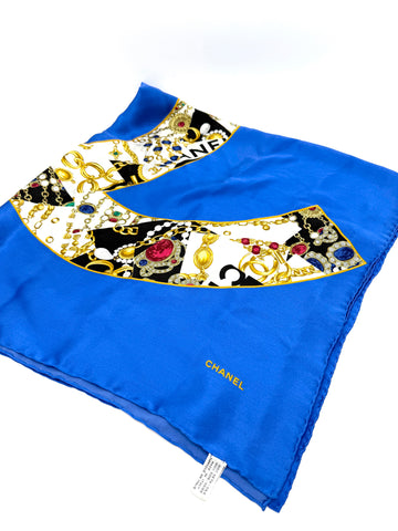 100% Authentic Chanel Blue XL Multi Charm CC Silk Scarf Condition: 9/10 Dimensions: 36"W 36"H...