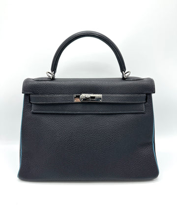 100% Authentic Hermes Blue Nuit/Blue Jean Togo Palladium HW Kelly 32 Condition: 9/10 Dimensions: 12.5"W...