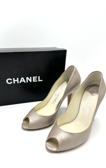 100% Authentic Chanel Champagne Peep Toe Heels Sz 36.5 Condition: 8/10 Dimensions: Size 36.5"W Inclusions:...
