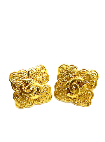 100% Authentic Chanel CC Vintage Cloverleaf Clip On Earrings Condition: 9/10 Dimensions: 1.5"W 1.5"H Inclusions:...
