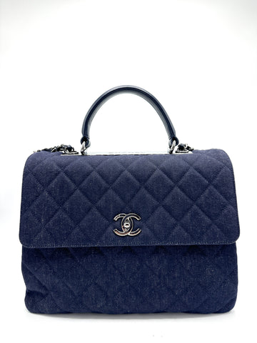 100% Authentic Chanel CC Rare Quilted Denim Trendy Top Handle Condition: 9/10 Dimensions: 13"W 10"H...
