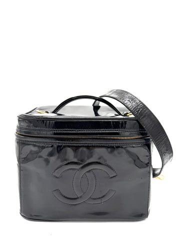 100% Authentic Chanel CC Black Patent Zip XL Vanity Condition: 8/10 Dimensions: 9.25"W 7"H 6.25"D...