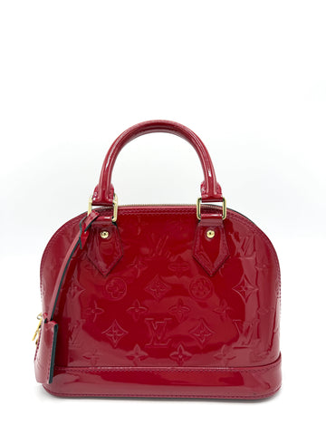 100% Authentic Louis Vuitton Cherry Red Vernis Alma BB Condition: 9/10 Dimensions: 9"W 7"H 4.5"D...