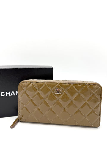 100% Authentic Chanel CC Olive Quilted Patent SHW Flap Long Wallet Condition: 9/10 Dimensions: 7.5"W...
