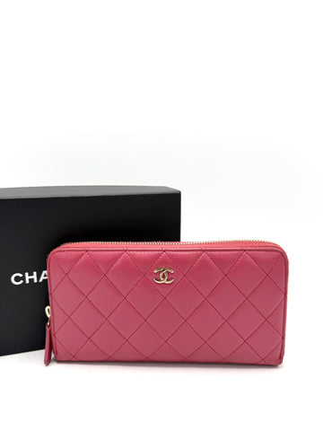 100% Authentic Chanel CC Pink Quilted Lambskin GHW Zippy Long Wallet Condition: 8.5/10 Dimensions: 7.5"W...