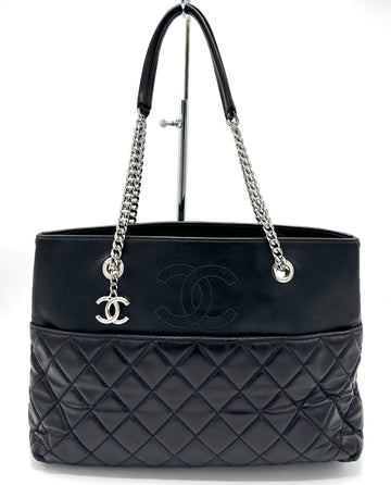 100% Authentic Chanel CC Charm Black Lambskin SHW Chain Tote Condition: 9.5/10 Dimensions: 14"W 8.75"H...