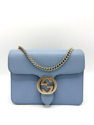 100% Authentic Gucci Celeste Interlocking GG Chain Flap Crossbody Condition: 9.5/10 Dimensions: 8"W 6.5"H 3"D...