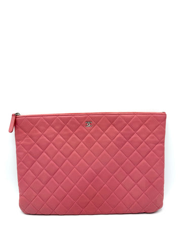 100% Authentic Chanel CC Pink Quilted Lambskin Zip Clutch Condition: 8.5/10 Dimensions: 13"W 9"H .5"D...