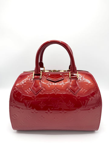 100% Authentic Louis Vuitton Cherry Red Vernis GHW Montana Condition: 9/10 Dimensions: 10.5"W 8.5"H 5"D...