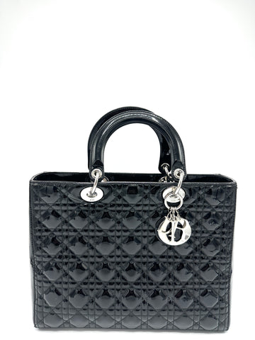 100% Authentic Dior Christian Black Cannage SHW Lady Dior Large Condition: 9.5/10 Dimensions: 13"W 9.5"H...