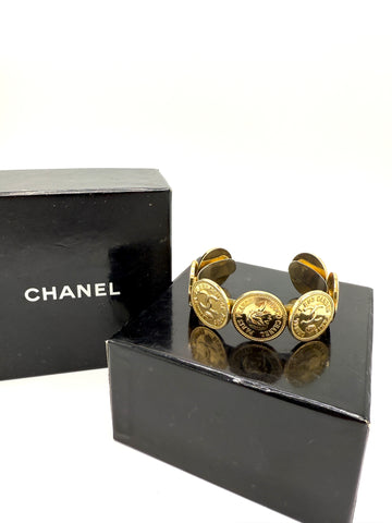 100% Authentic Chanel 7 Coin CC Gold Bangle Condition: 8.5/10 Dimensions: 7" Length; 1" Thickness"W...