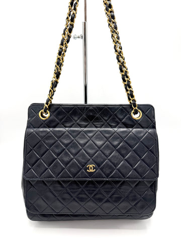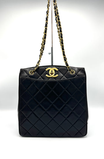 100% Authentic Chanel 24k Rare XL CC Black Quilted Chain Tote Condition: 9/10 Dimensions: 11"W...