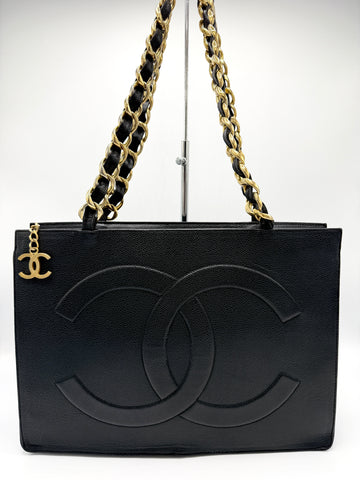 100% Authentic Chanel 24k Rare CC Medallion XL CC Black Caviar Chain Tote Condition: 9/10...