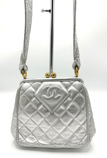 100% Authentic Chanel 24k Rare Metallic Silver Clamshell Crossbody Condition: 9/10 Dimensions: 8.25"W 6.25"H 2.5"D...