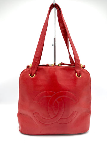 100% Authentic Chanel 24k Red Lambskin Double Golden Ball Dome Tote Condition: 8/10 Dimensions: 11"W...