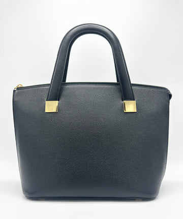 100% Authentic Celine Black Grained Leather Gold Plaque Logo Zip Tote Condition: 9/10 Dimensions: 10"W...