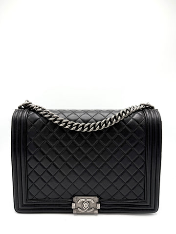 100% Authentic Chanel Black Lambskin Quilted SHW Large Boy Bag Condition: 9/10 Dimensions: 11.75"W 8.75"H...