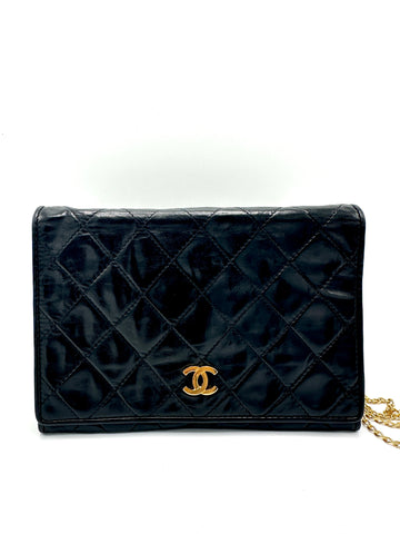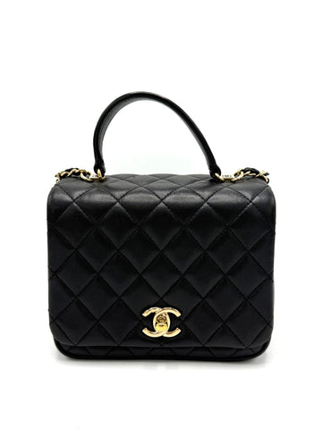 100% Authentic Chanel Black Lambskin GHW Top Handle Chain Flap Condition: 9/10 Dimensions: 6.5"W 5.5"H...