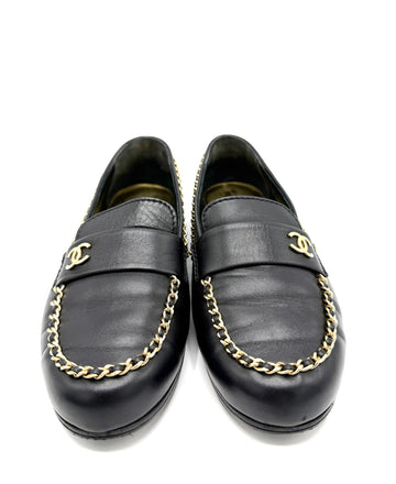 100% Authentic Chanel Black Lambskin Chain Mosaic Loafers Condition: 9/10 Dimensions: 36 1/2 C"W Inclusions:...