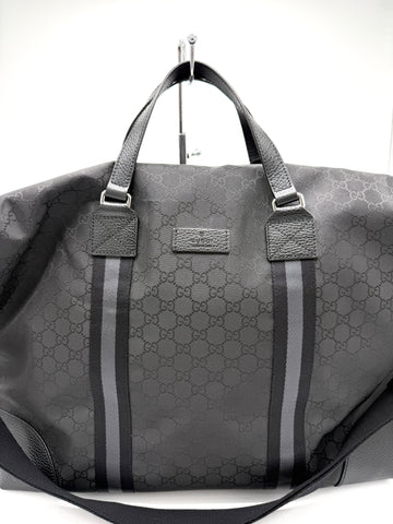 100% Authentic Gucci Black Guccissima Canvas Boston Travel Bag Condition: 9.5/10 Dimensions: 18"W 14"H 9"D...