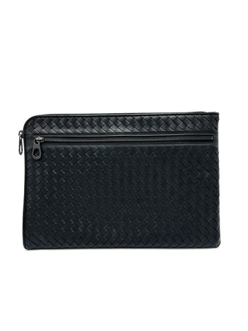 100% Authentic Bottega Veneta Black Intrecciato Front Zip Clutch Condition: 9/10 Dimensions: 13.5"W 9.5"H 1"D...