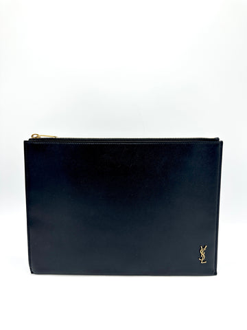 100% Authentic Saint Laurent Black GHW Logo Zippy Clutch Condition: 9/10 Dimensions: 11.5"W 8.5"H 1"D...
