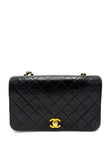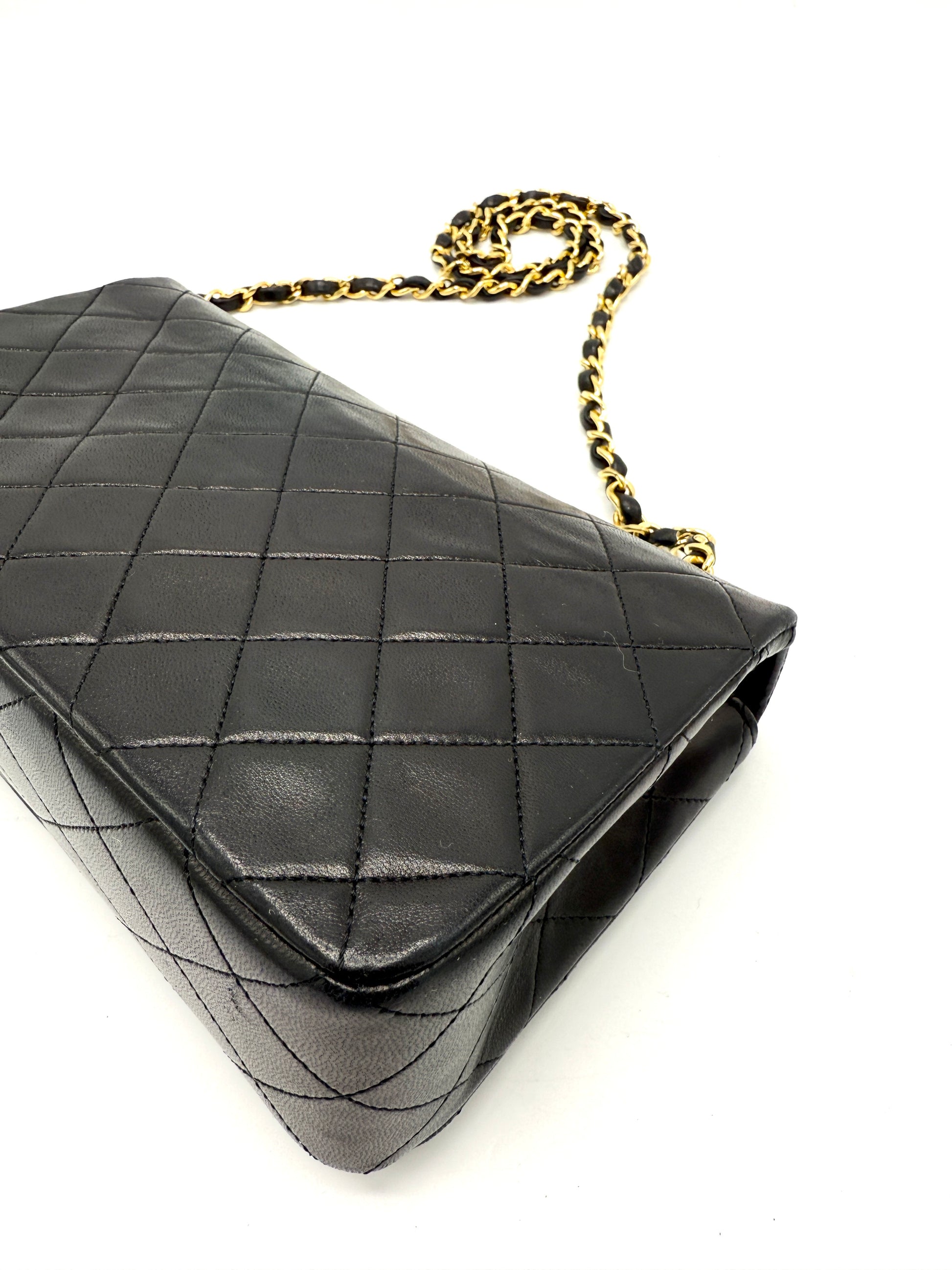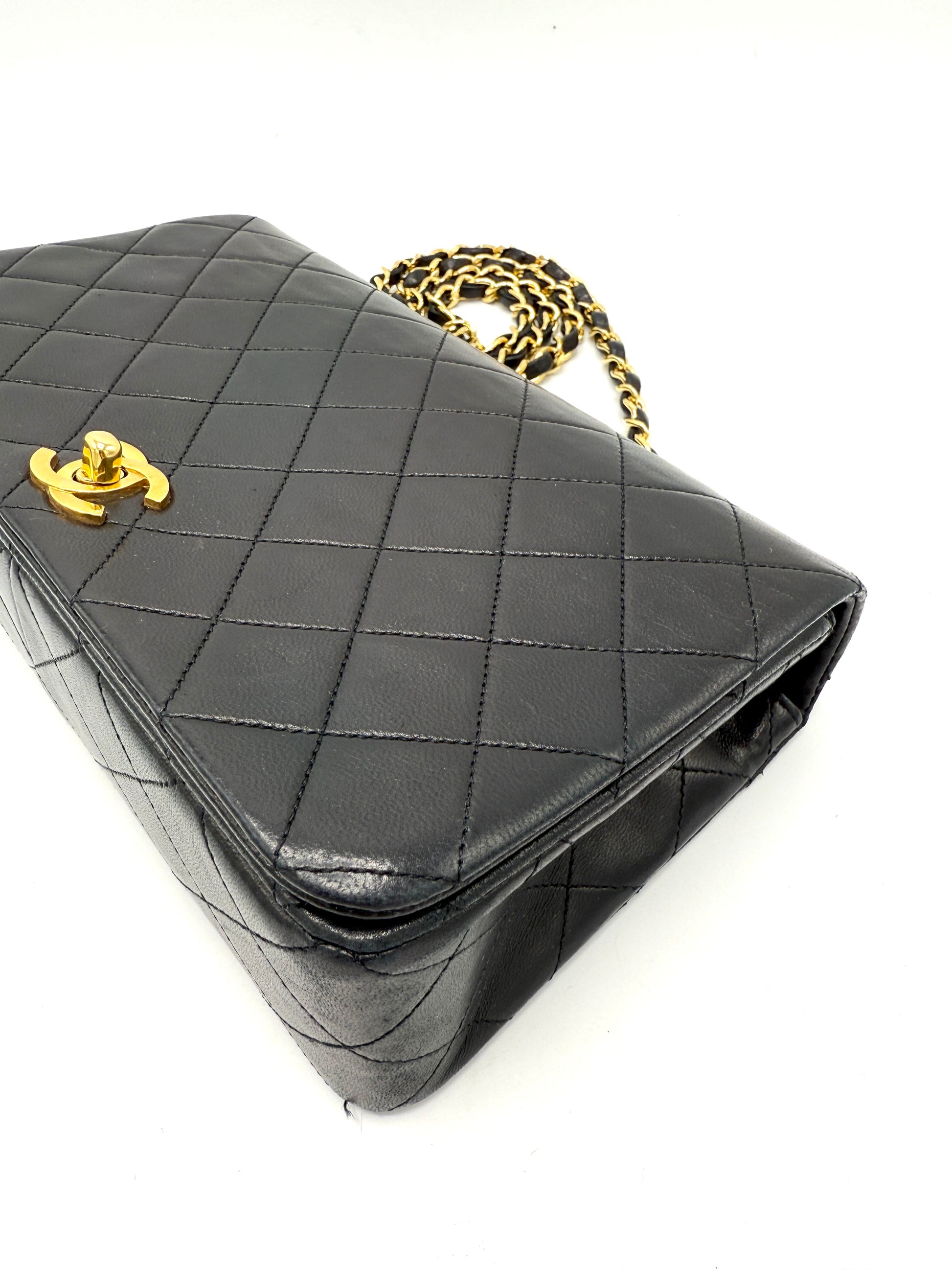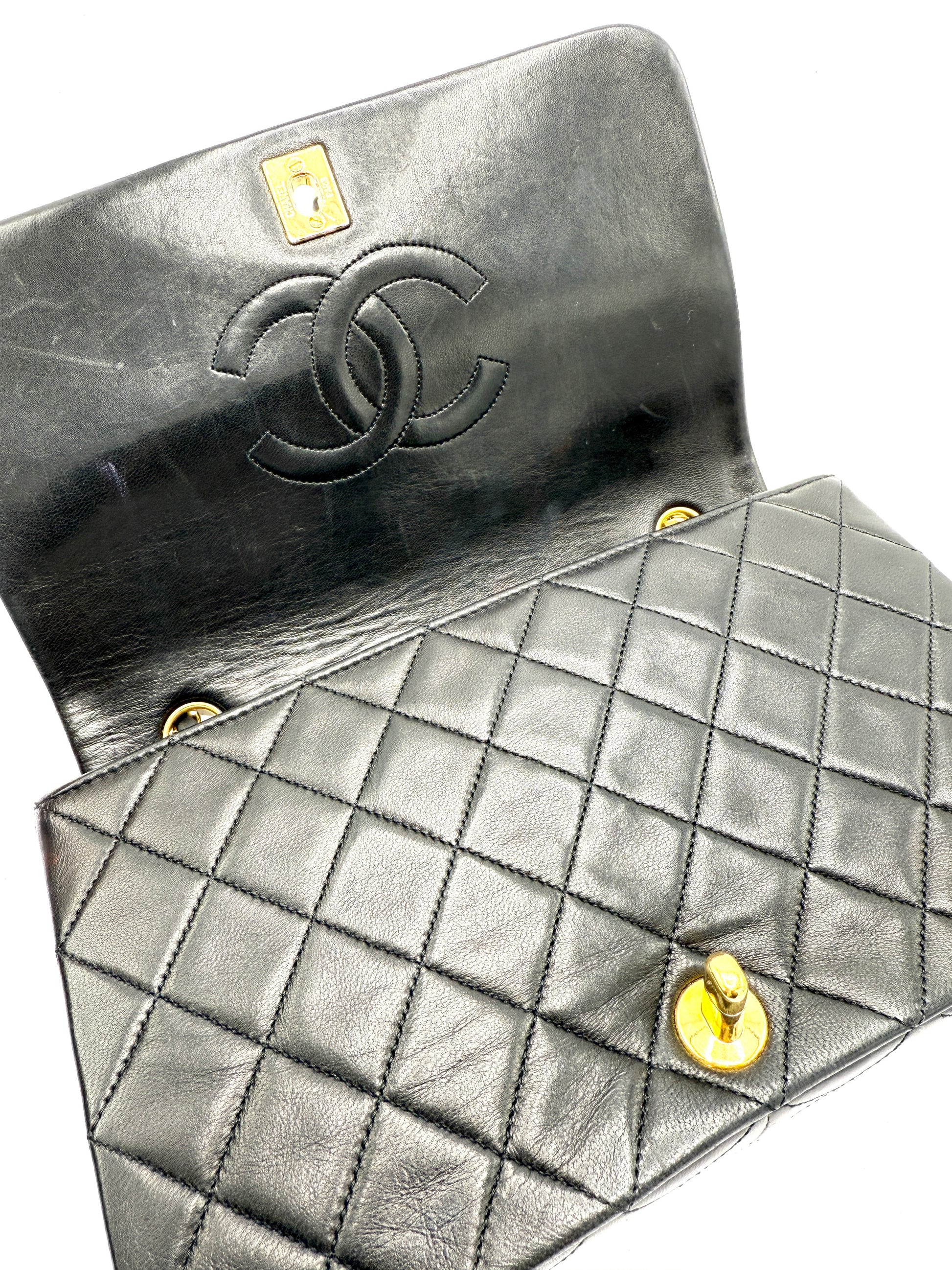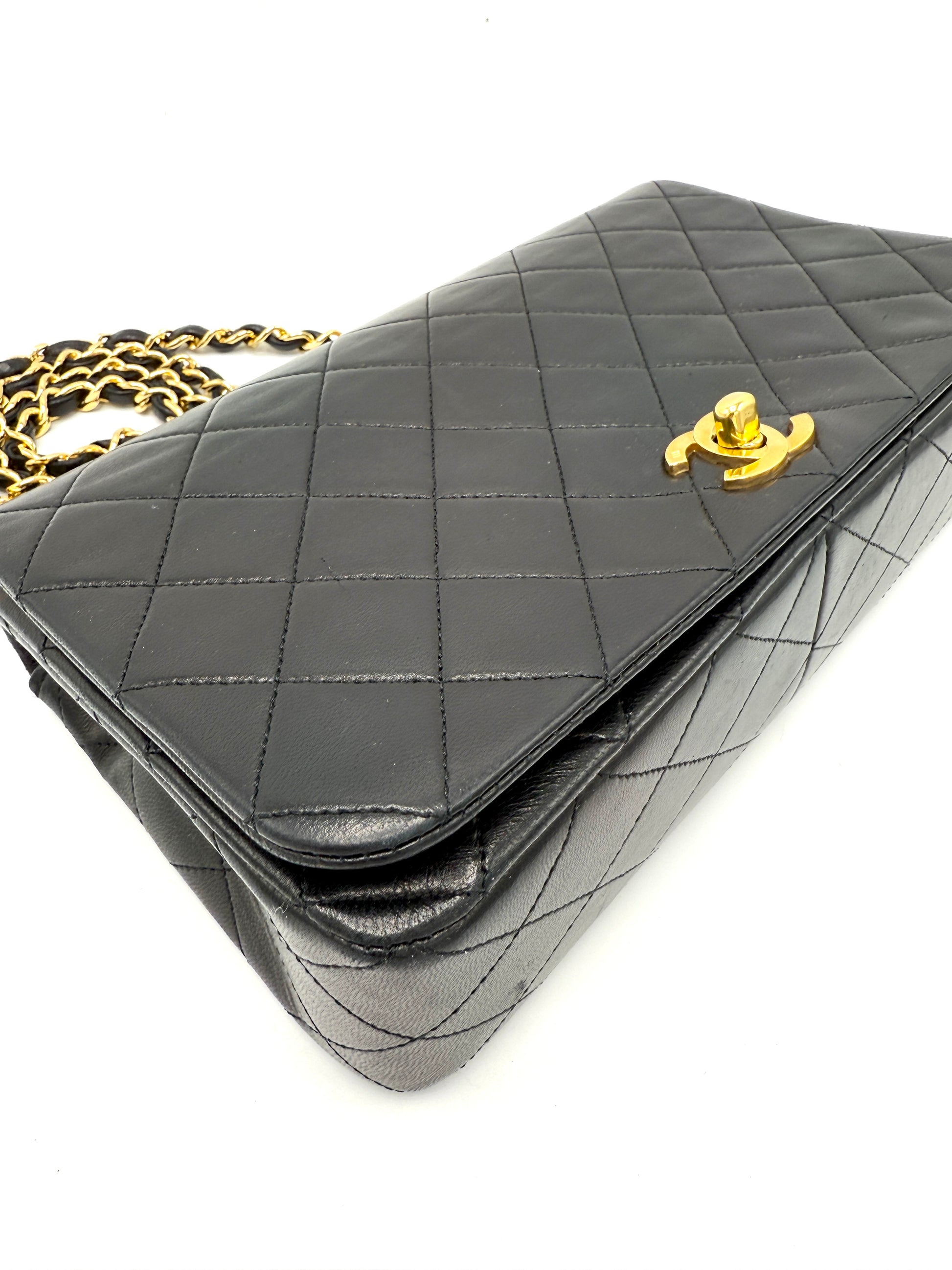 100% Authentic Chanel 24K CC Black Lambskin Full Flap