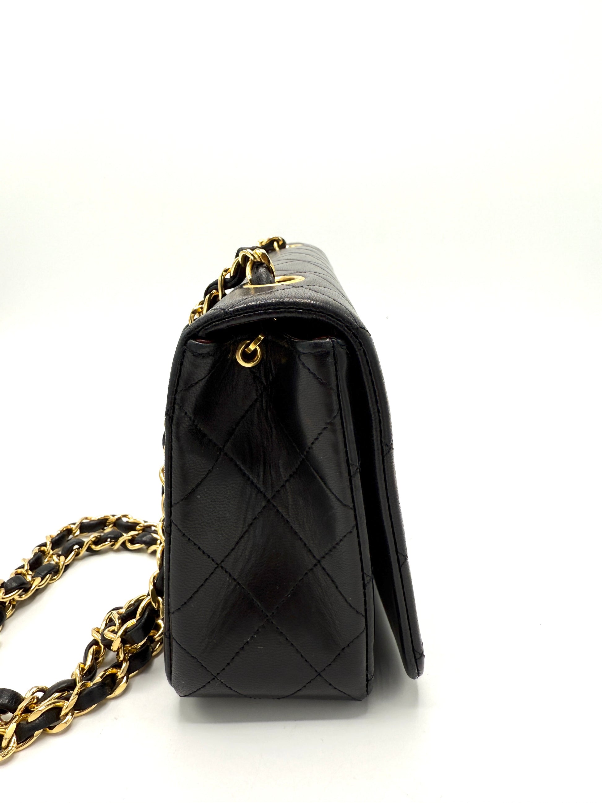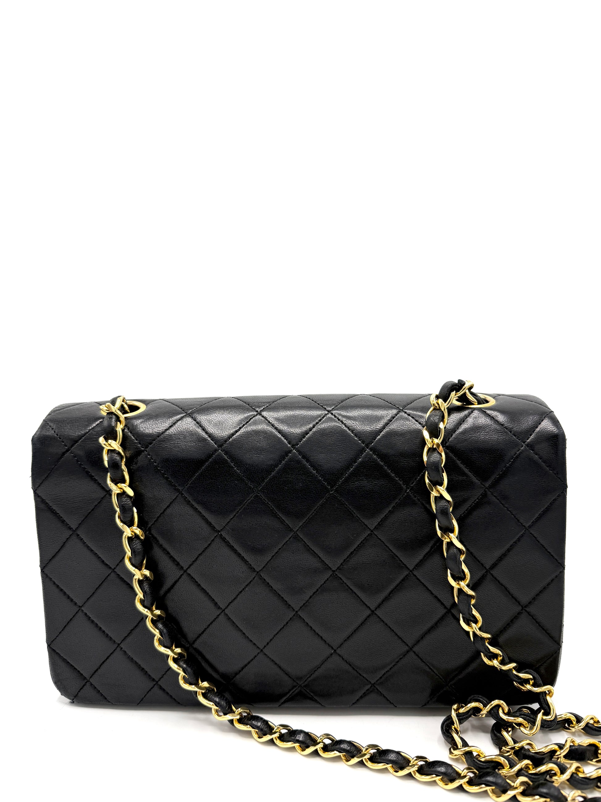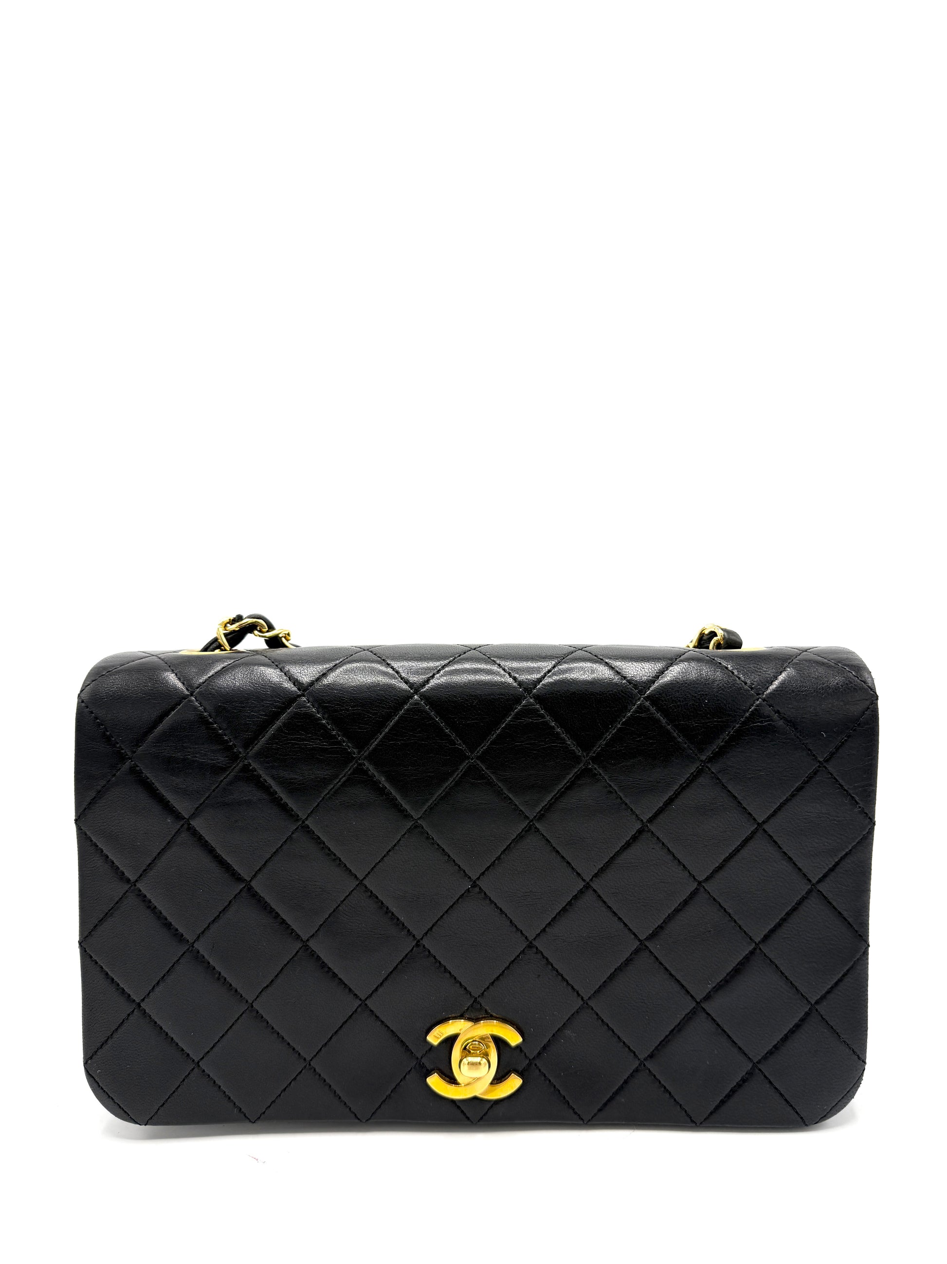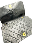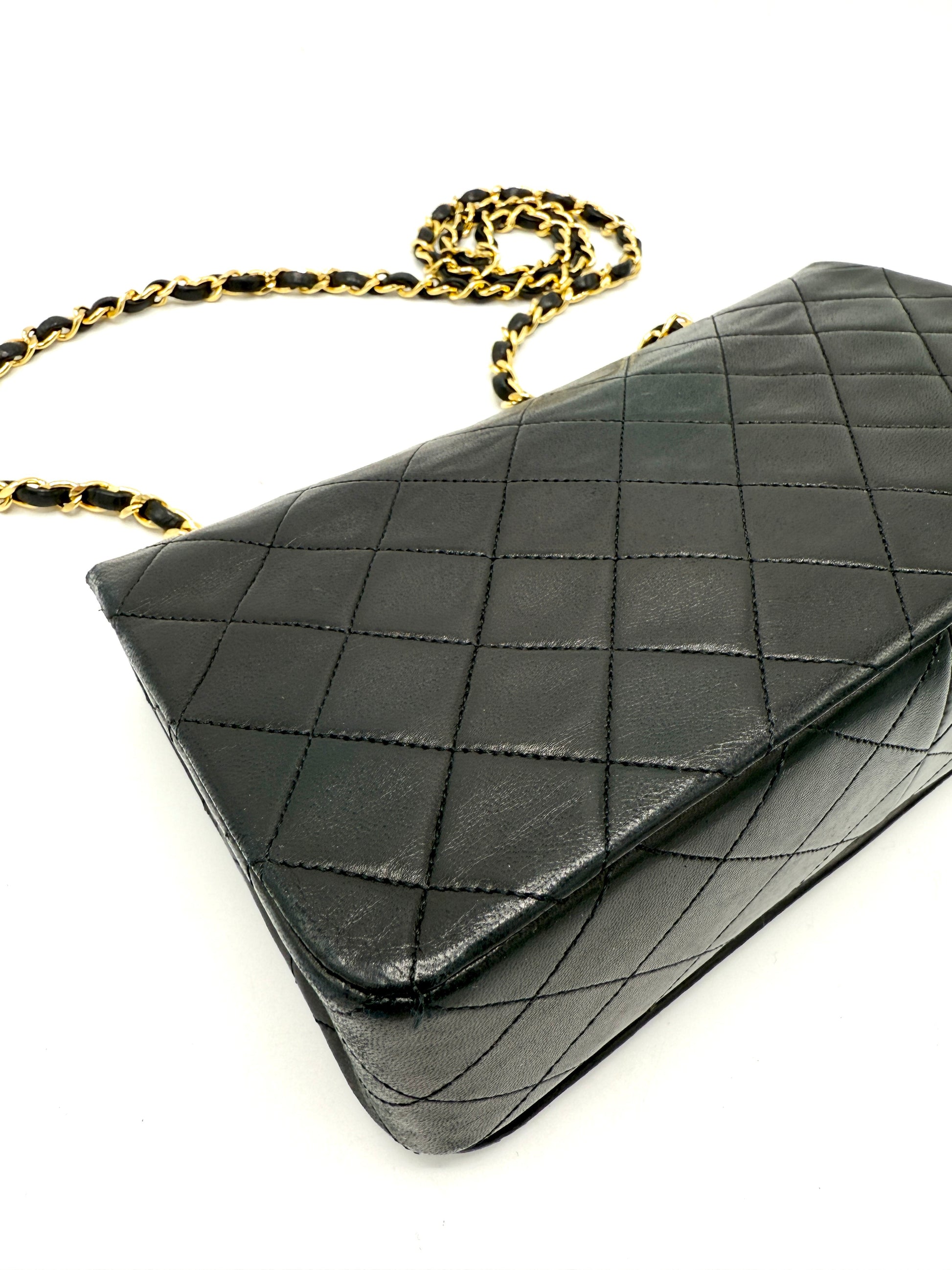 100% Authentic Chanel 24K CC Black Lambskin Full Flap