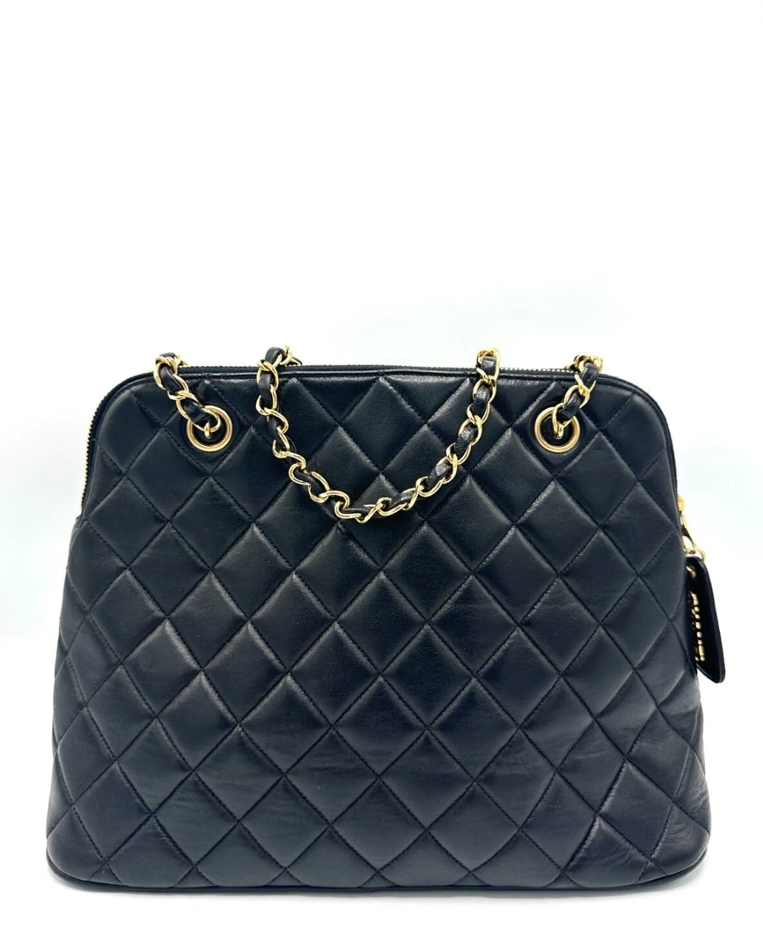 100% Authentic Chanel 24K CC Black Lambskin Quilted Dome Tote