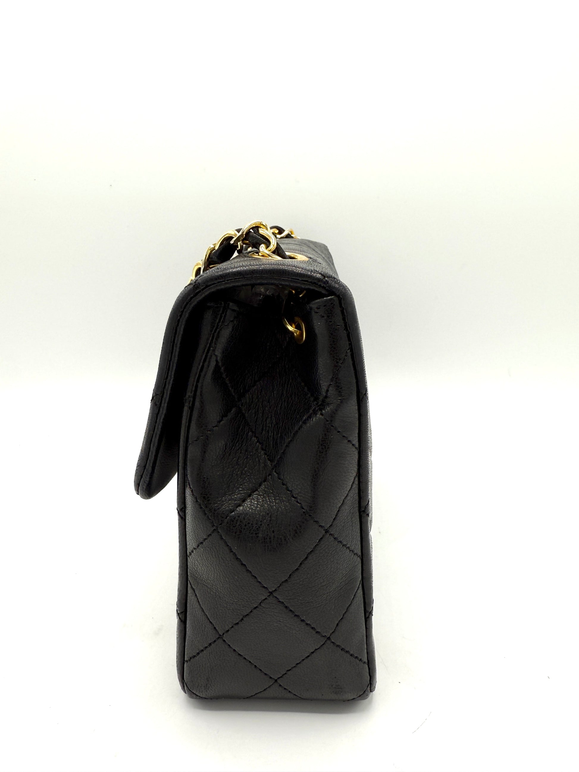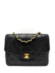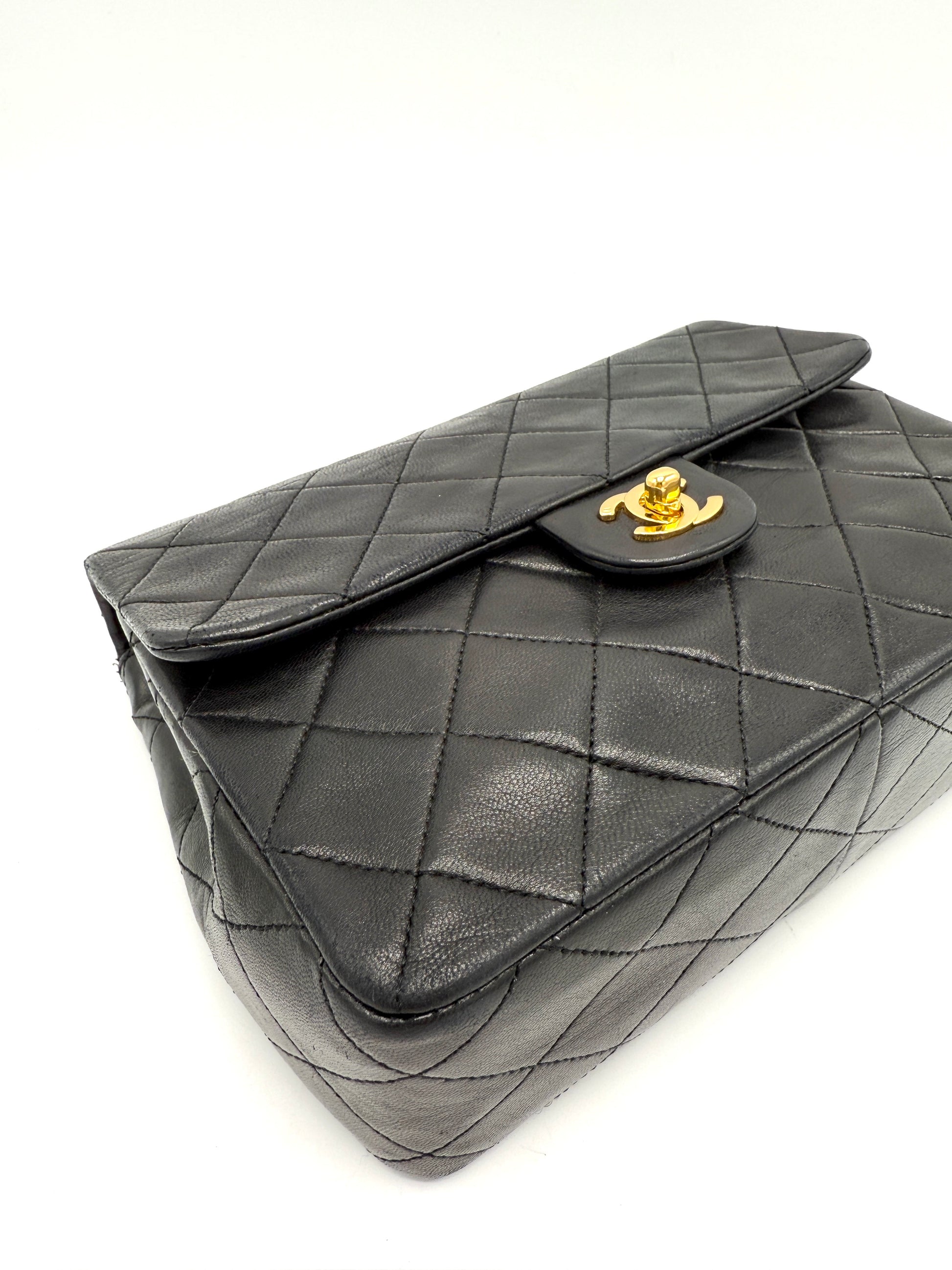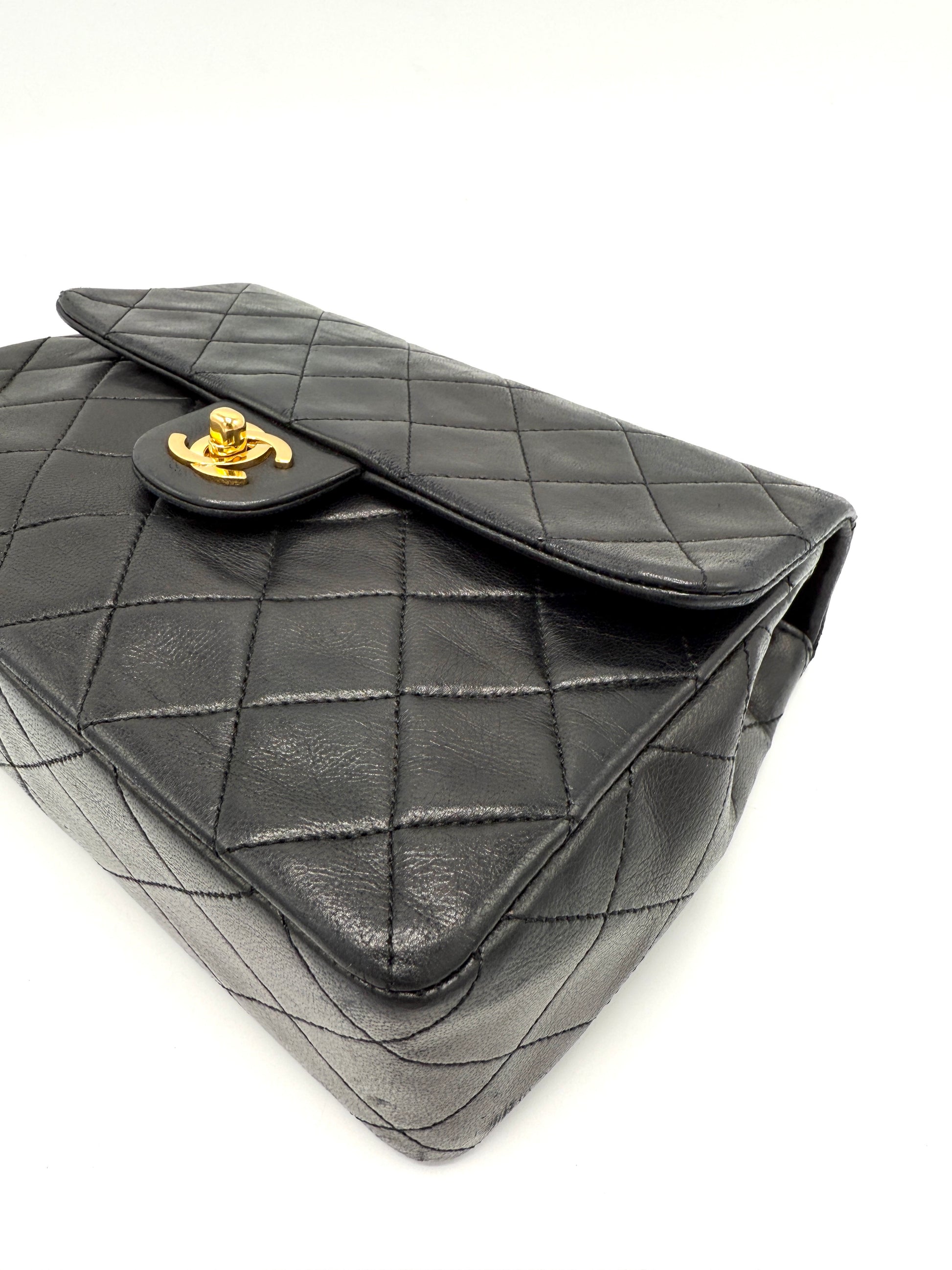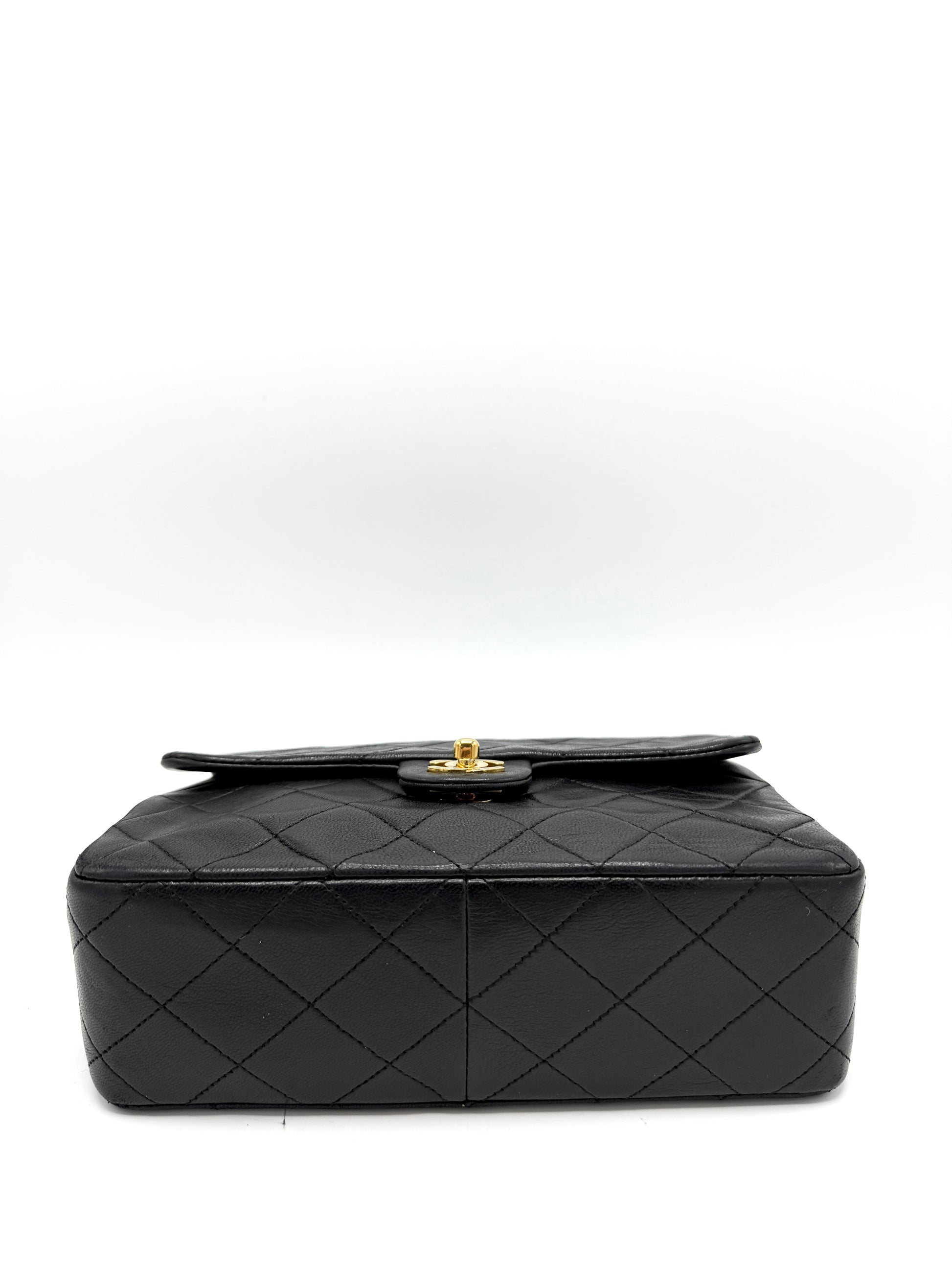 100% Authentic Chanel 24k CC Black Lambskin Square Flap